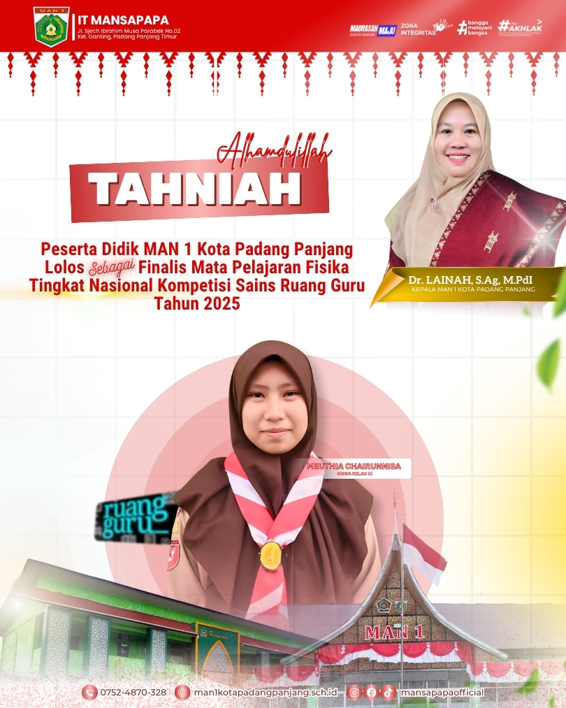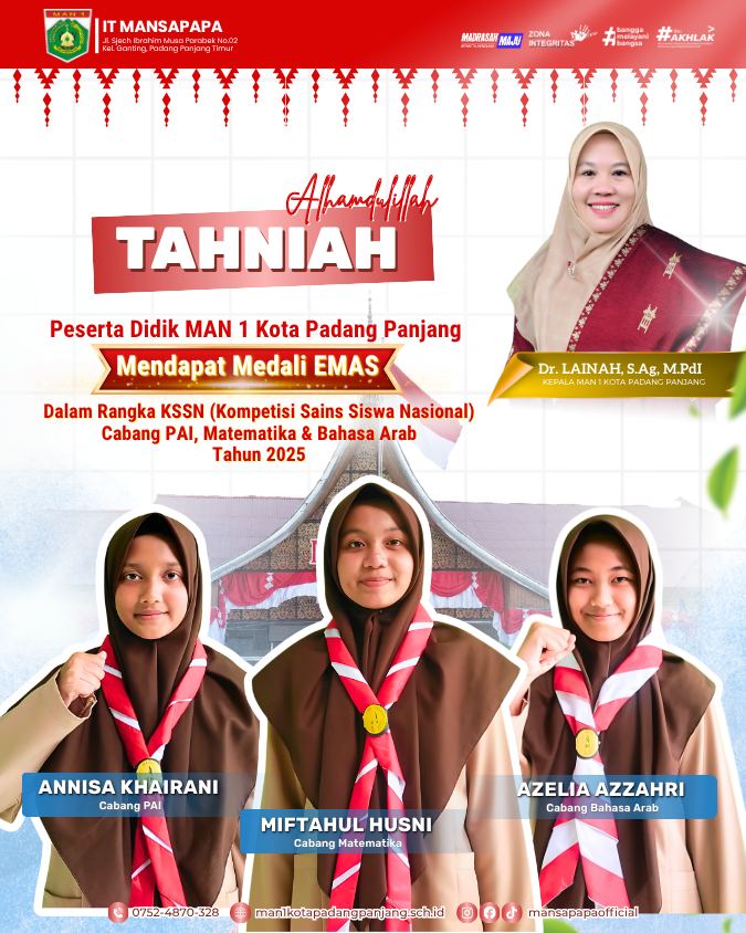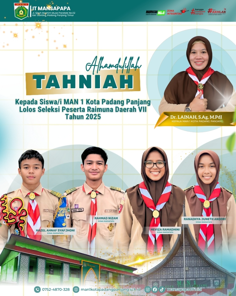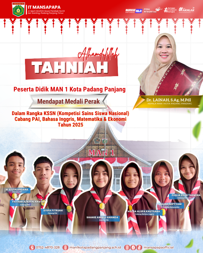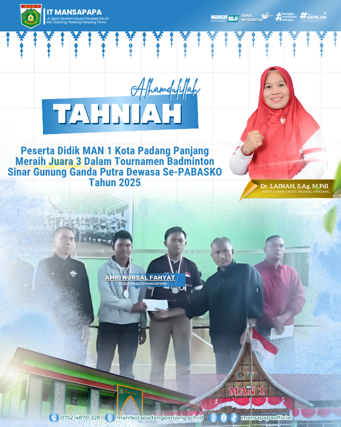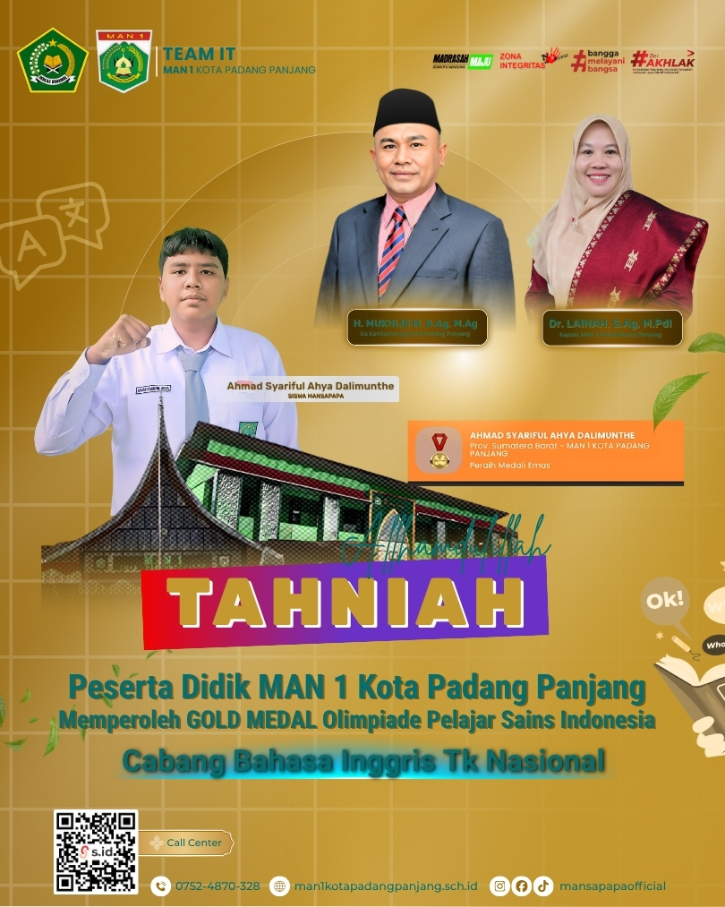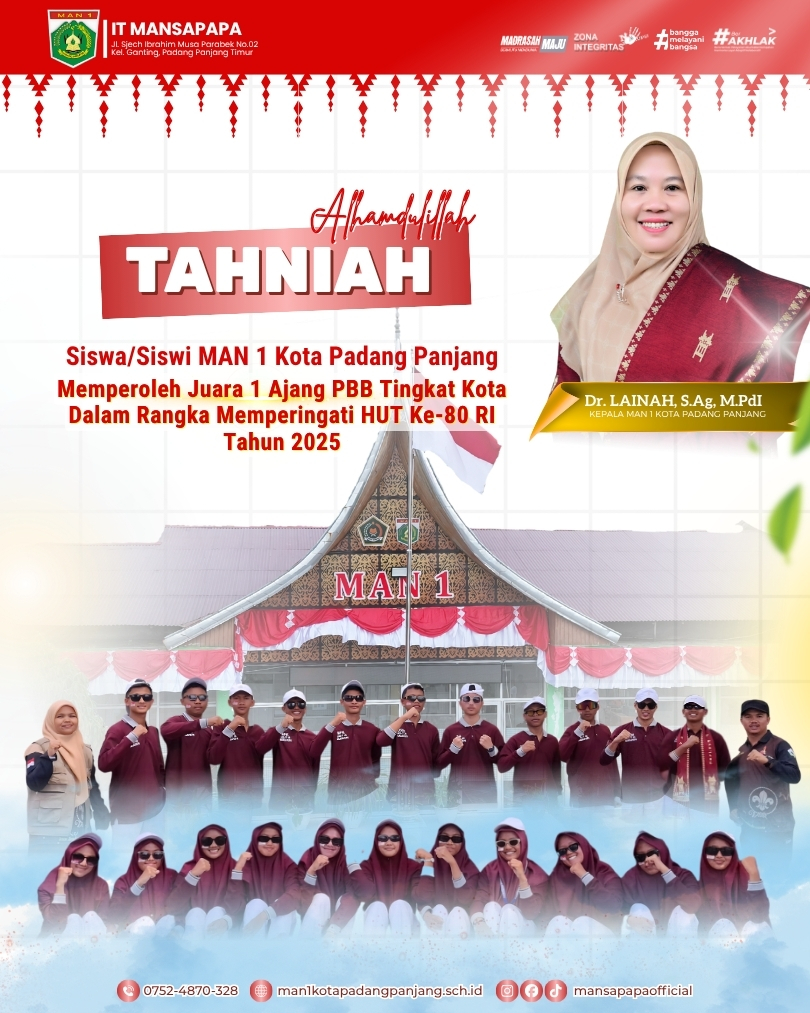 Kami perkenalkan aplikasi MAN 1 Padang Panjang yang dapat membantu siswa, guru, dan orang tua dalam memperoleh informasi terkait kegiatan sekolah, nilai, dan lainnya.